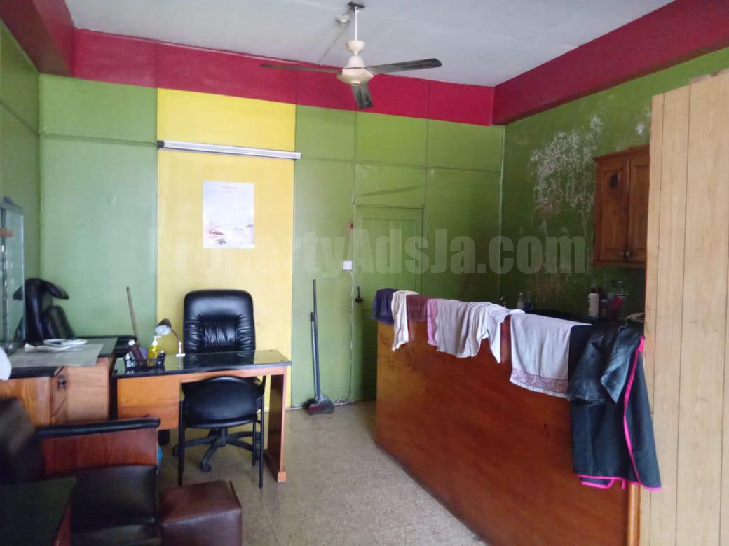 Tis two commercial unit is located in the very high visibility Molynes Plaza. It has 3 tenants. The ground floor is an open shop space with partitioned into a bar and a hair salon. The top floor with its own entrance accessed by a staircase is occupied by a church with two bathrooms, an office and a general-purpose partitioned space. The unit is metered for multi-tenant occupancy with security iron grilled bars at the doors, windows and other external openings, security cameras, ceiling fans and A/c split unit on the ground floor. The plaza is well trafficked by both walks-in and vehicular traffic. The unit is complimented by a variety of commercial establishments including hardware, wholesale, IT center, insurance co., restaurant, cafe, gym and other businesses with adequate parking. The plaza centered in the midst of a plethora inc., professional accommodations, retail, vocational and trade establishments, all within a two- minute proximity to the Halfway Tree commercial district.