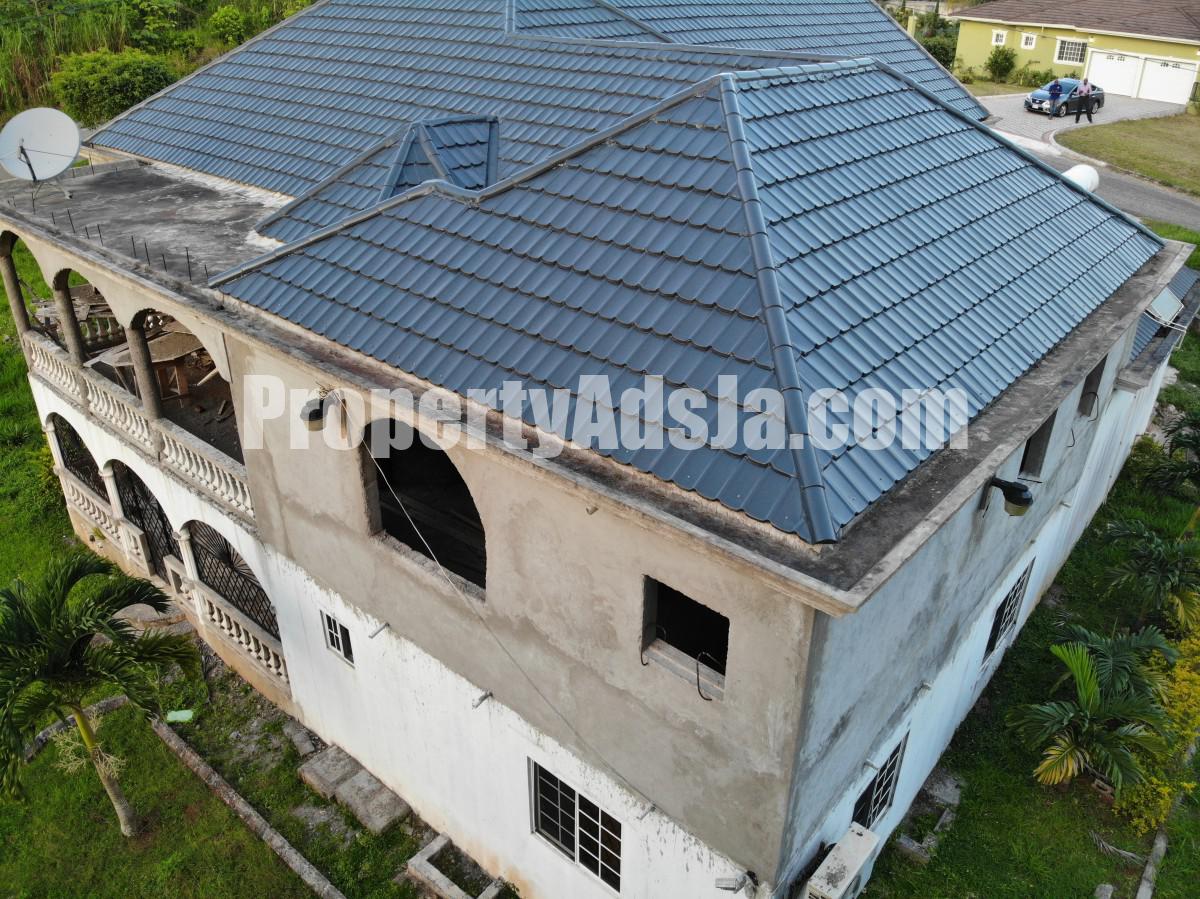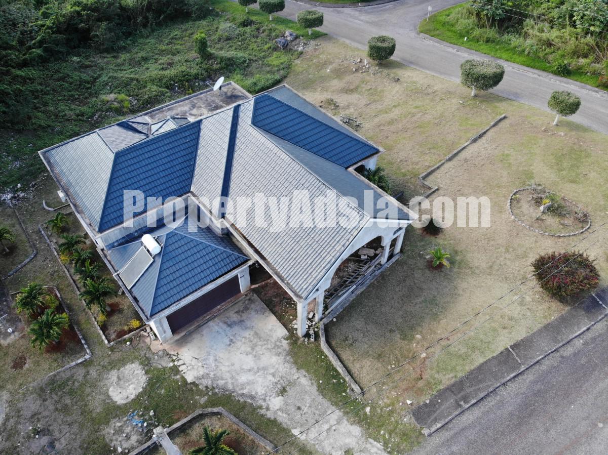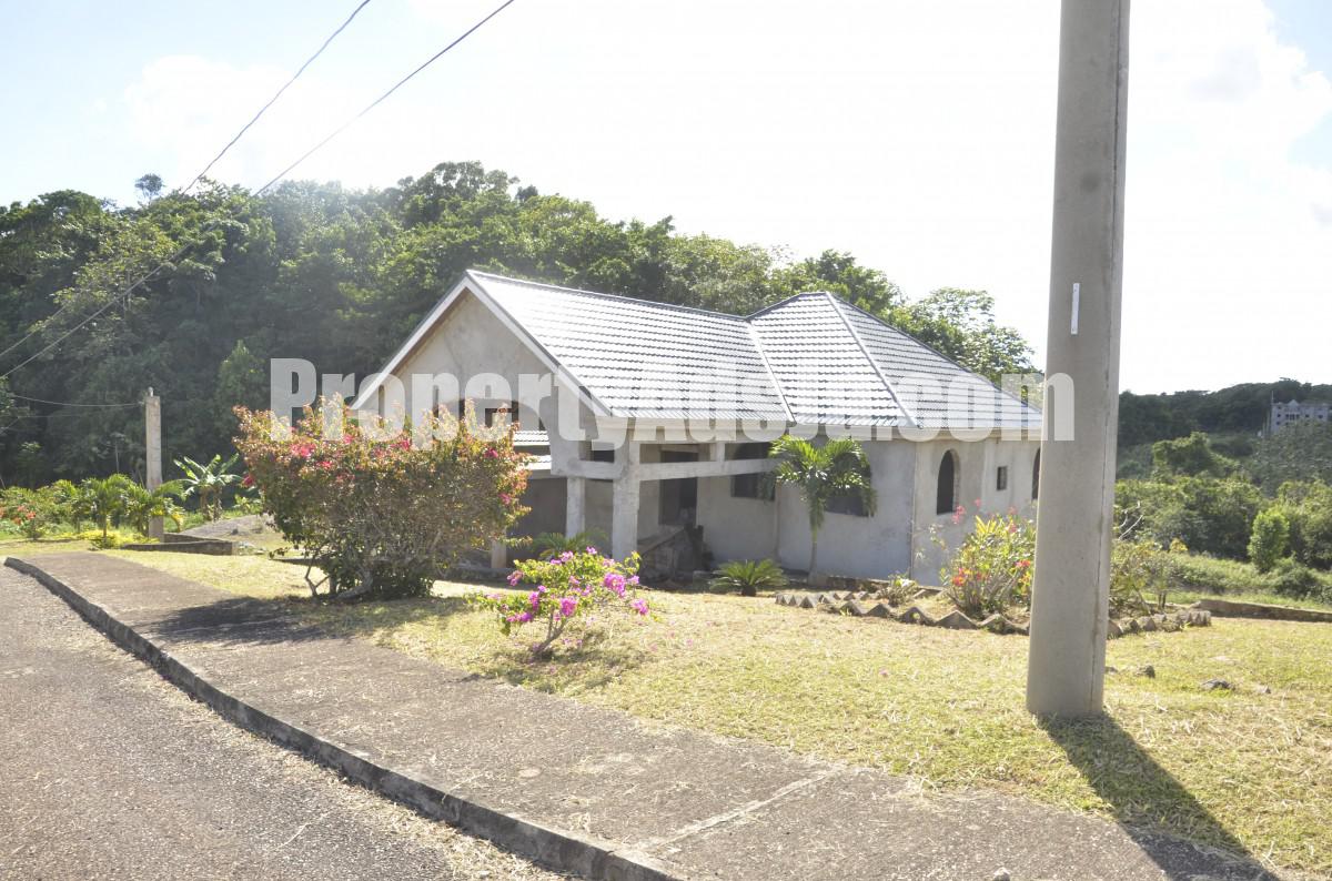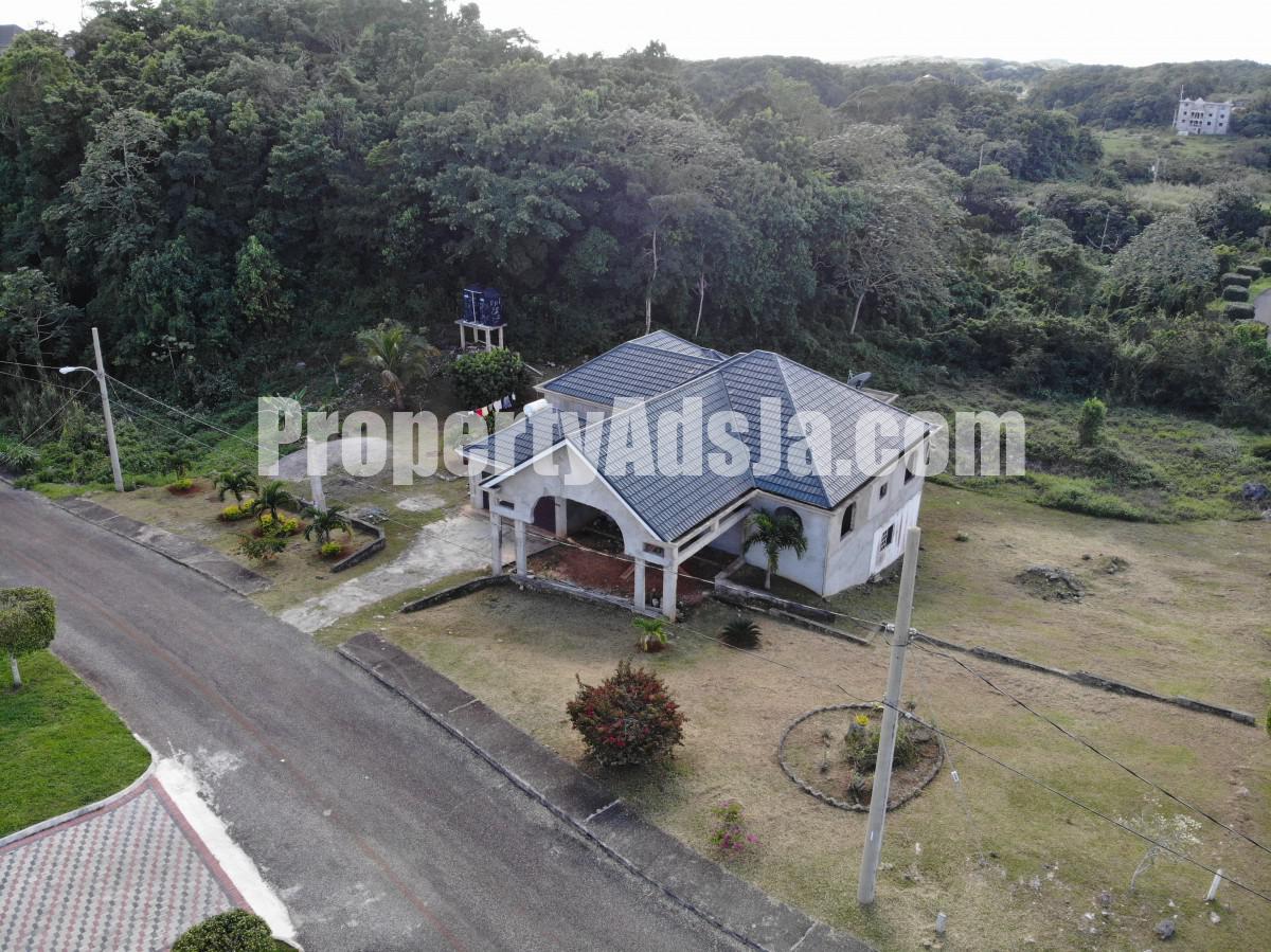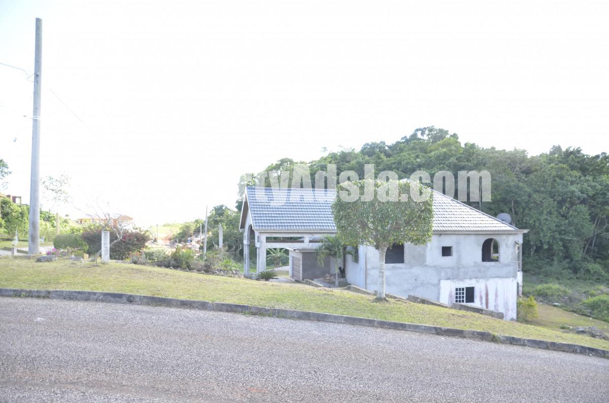 Nested on one third acre of flat well fruited land in the gated community of Moorlands Estate. This unfinished house can be easily transformed into your ideal home. Downstairs consists of two bedrooms and a bathroom, laundry, lining closet, Kitchen living and dining, pantry. Unfinished upstairs consists of a open concept living dining and kitchen and a family room. Two bedrooms one bathroom and a grand master bedroom en suite also have a balcony with a breathtaking view. Call Melisha at 1876-489-9289 an appointment today.