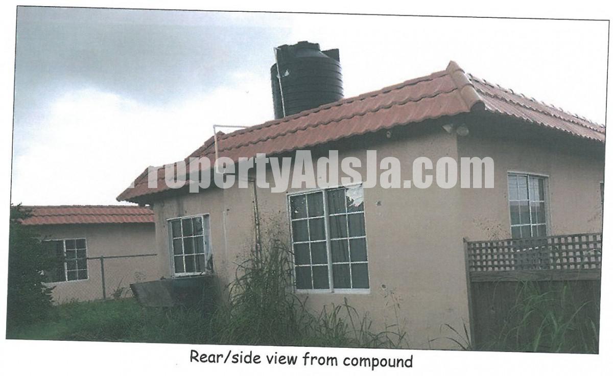 PRIVATE TREATY SALE -Property is said to comprise of 2 bedrooms with built-in closets boasting louvre design doors, one comprising an air conditioning unit, and the other with a ceiling fan, 1 bathroom with toilet, face basin mounted on ground cupboard, bath tub, wall tiles and medicine cabinet, living/dining room, kitchen with twin staneless steel sink with formica countertop mounted on ground cupboards, and wall mounted cupboards, and open front porch with single access grill door. The house is said to be approximately 8 years old. The community of Wedgewood Gardens is said to be a middle income residential neighborhood on the outskirts of Spanish Town and