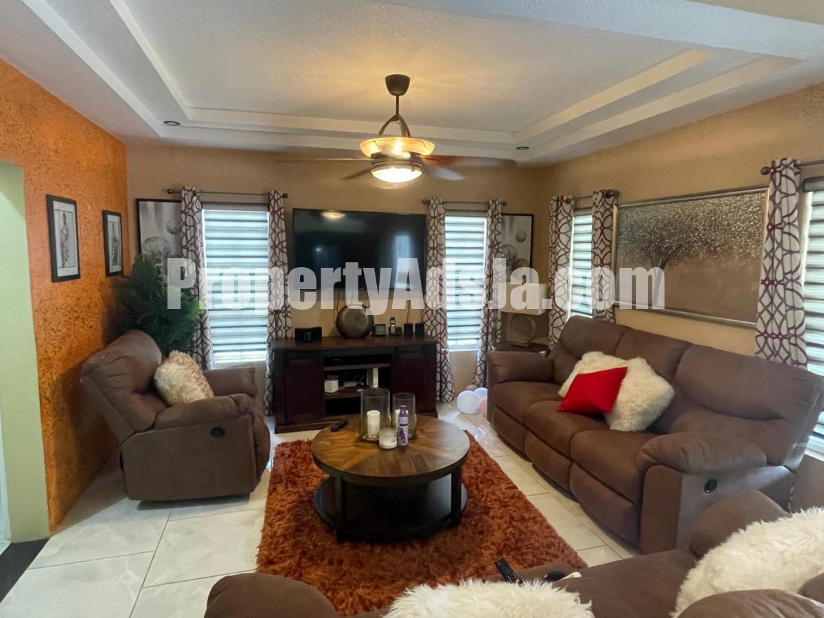 Spacious 5-bedrooms home in a secure, gated community with 24-hour security, parks, and sports facilities. Only 1520 mins to Kingston, 2530 mins to the airport, and 5 mins to shopping.
